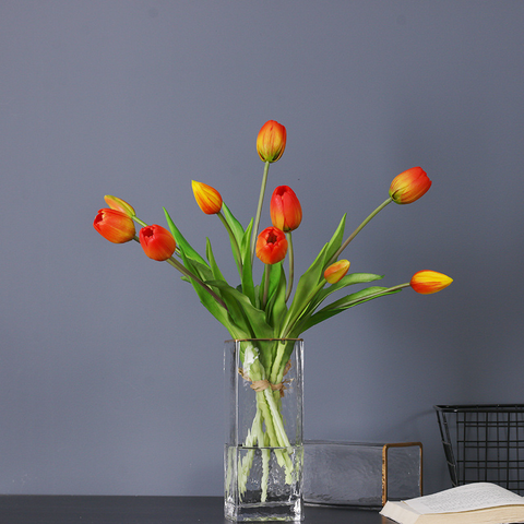 Borracha macia artificial sentir tulipa artificial aberta tulipa flor atacado tulipa buquê